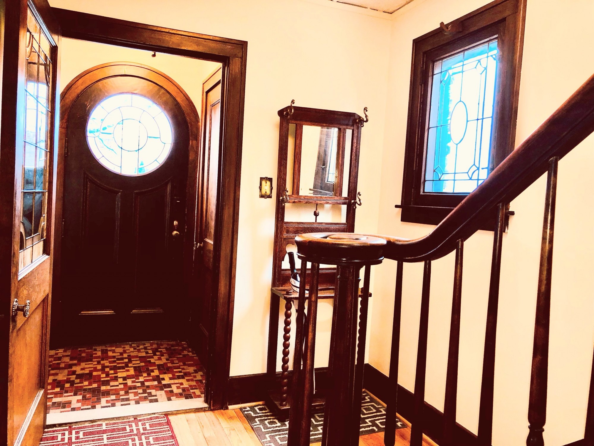 Break bread with loved ones in your formal dining room with cut glass windows.
